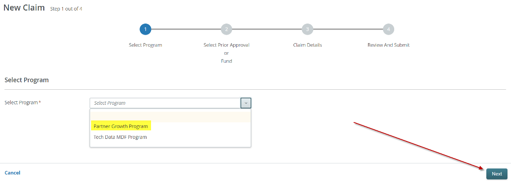 - Select the Partner Growth Program in the dropdown and click Next.