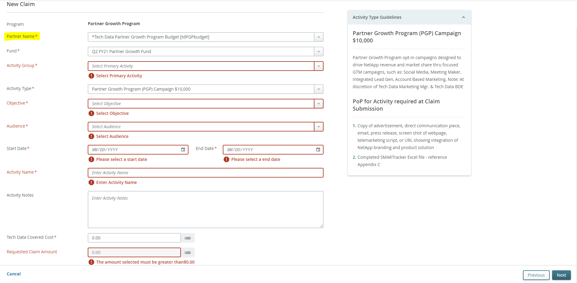 - Activities executed in Partner Growth Program (PGP) are CLAIM ONLY, a Prior Approval request does not need to be submitted before creating your claim because Tech Data pre-approved your participation in PGP.